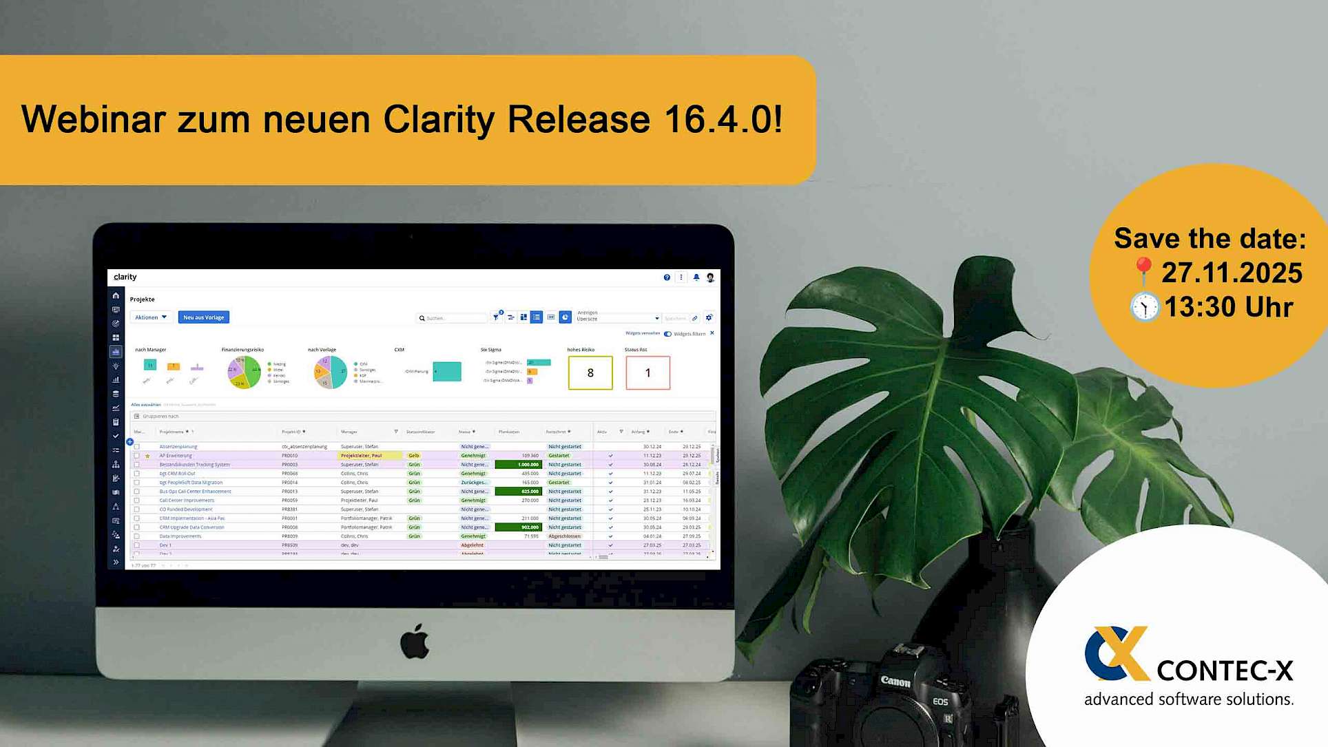 In unserem Webinar am 27. November 2025 von 13:30 - 14:30 Uhr zeigen wir Ihnen alles Wichtige und Interessante rund um die neue Clarity Version.